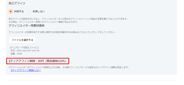 ここでは、販売者(執筆者)側の視点から見た2ティア報酬の設定と仕様について解説します。