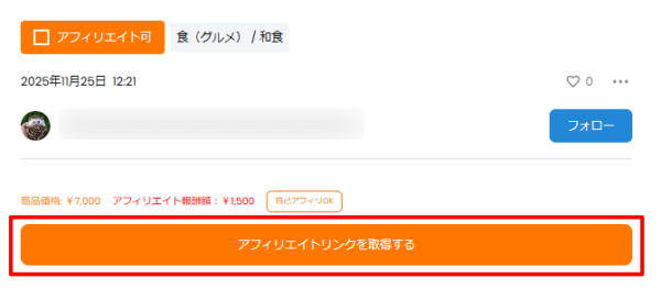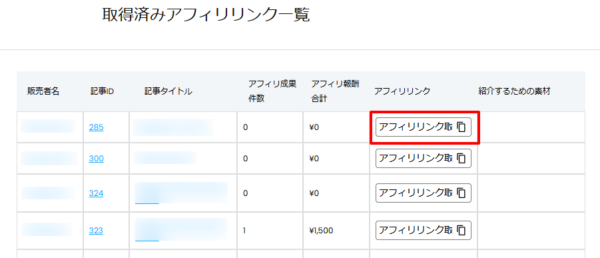 アフィリエイト可能な記事を見つけたら、あなた専用の「紹介用URL(アフィリエイトリンク)」を発行しましょう。 このリンクを経由して記事が購入されると、あなたに成果報酬が発生します。